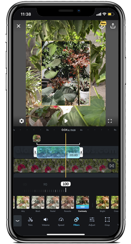 يمكنم إضافة فلاتر وتأثيرات يمكنك تطبيقها وتجربتها على مقاطع الفيديو مباشرة، حيث يتم تغيير الألوان على المقطع واختيار التأثير المناسب لك، كما في الصورة التالية من مجموعات الفلاتر التي يقدمها لك التطبيق: